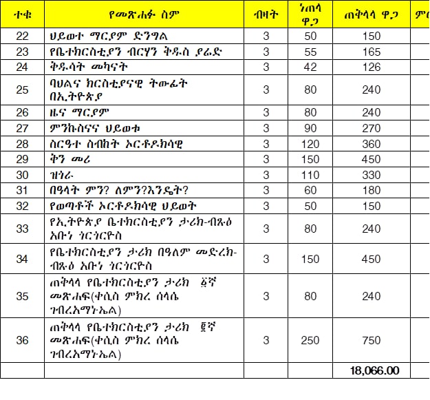 ከእዚሁ ጋር ተያይዞ አንድ ወንድማችን ከተዘረዘሩት ውጪ 40 መጻሕፍት በቅርቡ መለገሳችውን እናሳውቃለን።